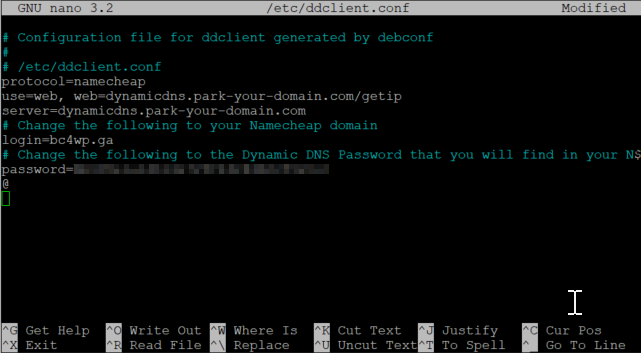 There's a good guide here. I skipped to the "Installing DDclient" section, since all the rest has already been taken care of. Once again, SSH into the Pi and do the following: