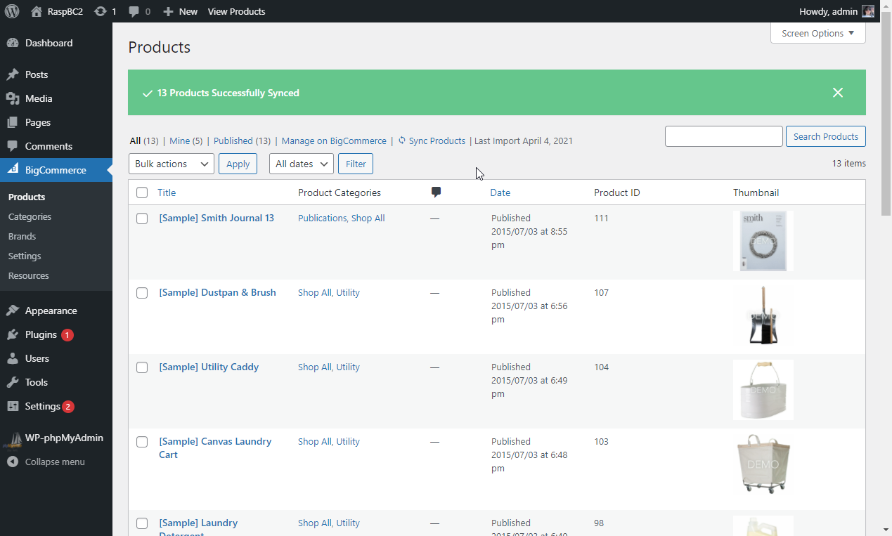 I knew the sync worked, since I could see products in the BC4WP plugin: