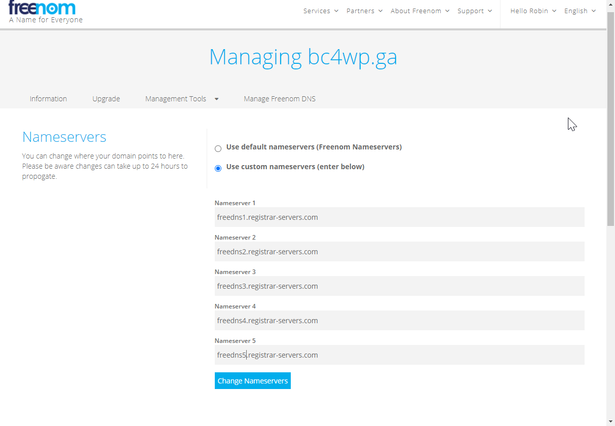 Since I plan to use Namecheap's free DDNS, I went ahead and set the name servers to Namecheap's servers during the initial setup: